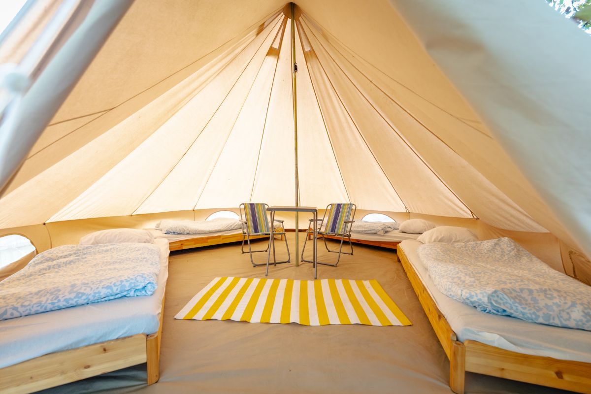 Tágas, elegáns és magától értetődően kényelmes – a Bell Tent Prémium tökéletes fesztiválmenedék négy fő részére.